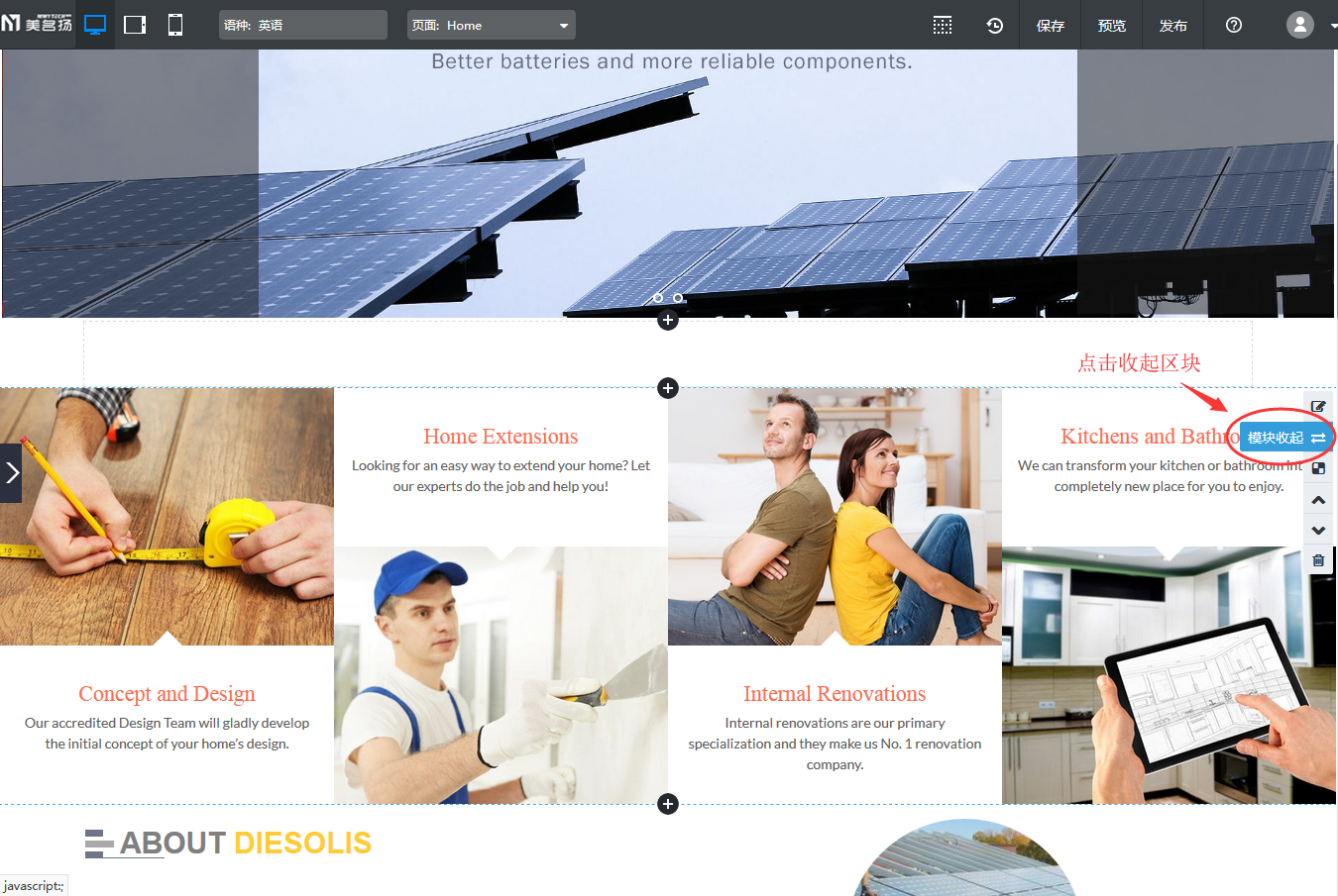 【应用场景】用户在网站编辑界面添加区块时,如果希望提高区块适用性,保持网站页面结构美观,可以将区块进行展开或收起(目前部分区块支持此功能,之后会逐步扩展至所有区块)。