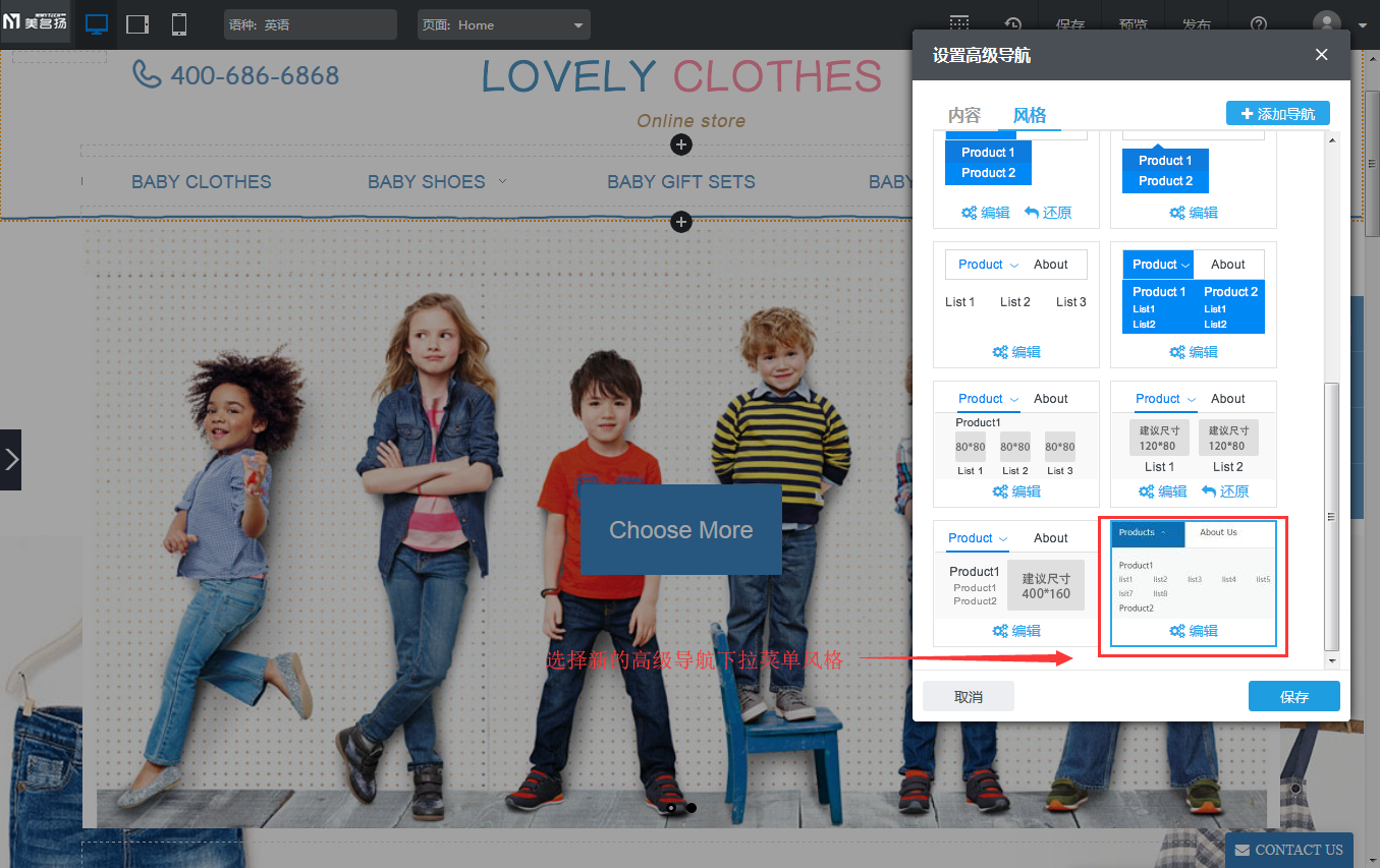 【操作方式】高级导航设置-》风格-》新增的高级导航下拉菜单风格。