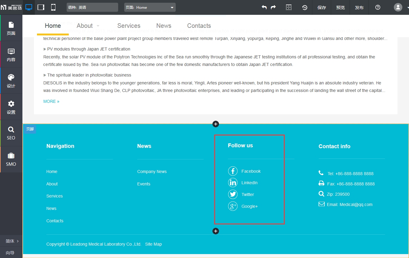 【应用场景】当用户的网站使用彩色背景色的页脚时,可以使用新增的白色风格分享组件和社交关注组件,提高页脚的美观度和协调性。