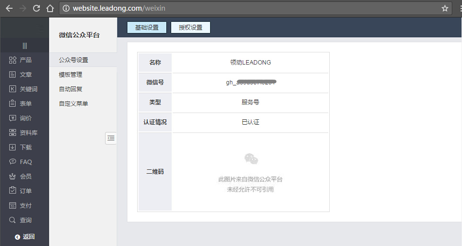 请注意:与企业官网对接的微公众号类型需要是“服务号”,并且需要通过微信认证(微信服务号认证需要300元,这个是微信平台收取),才可以使用“微信平台”。