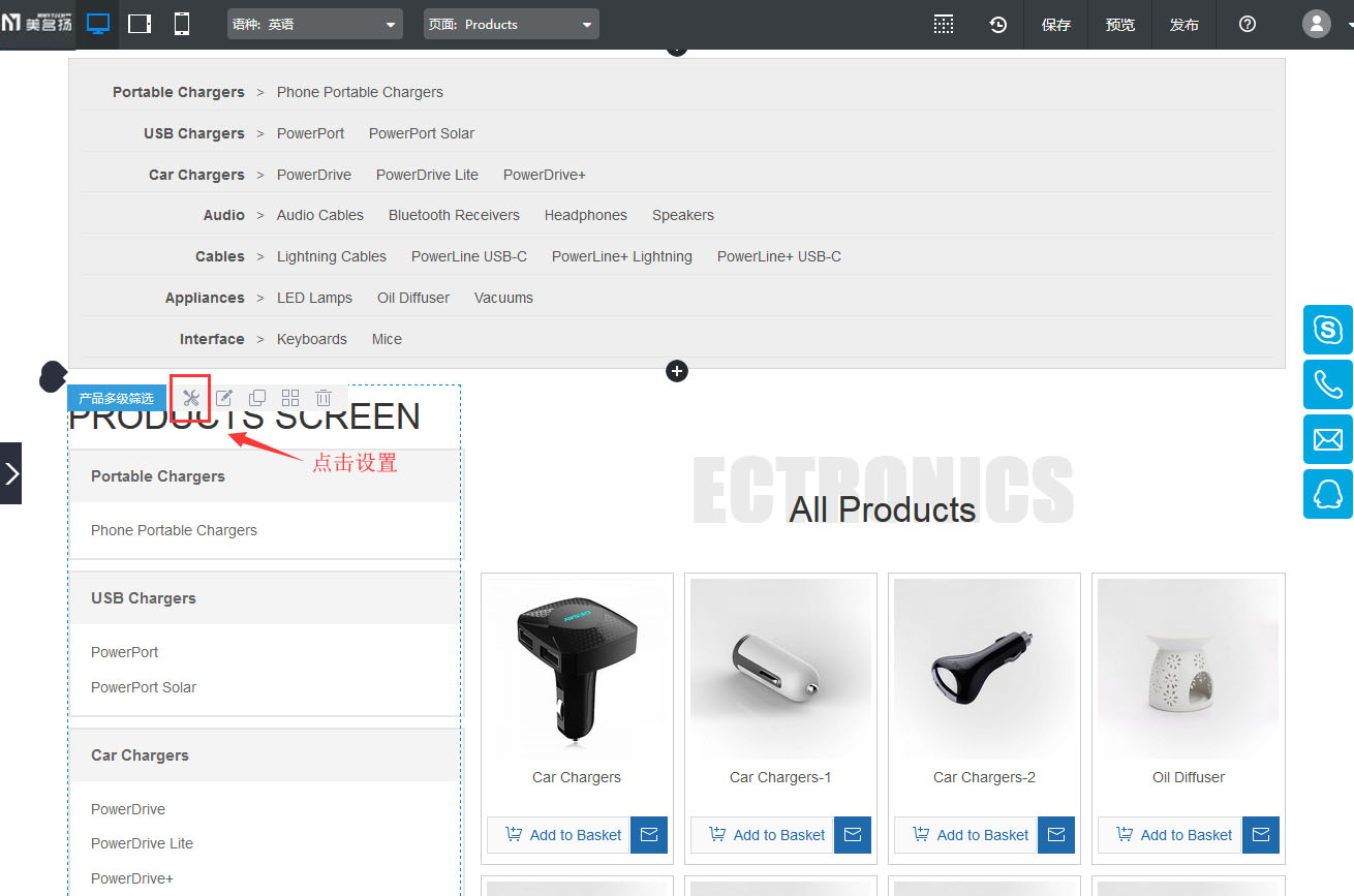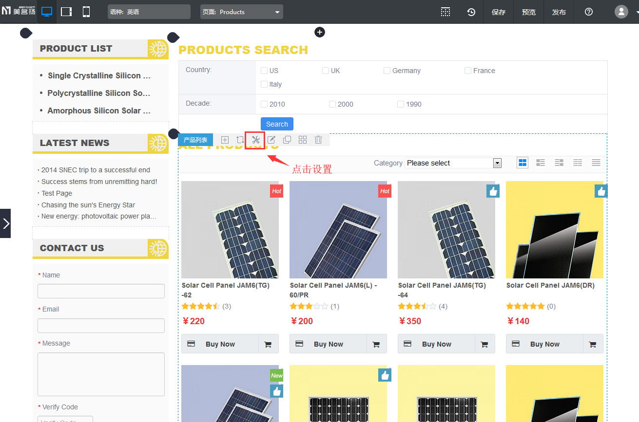 【操作方式】在产品列表组件设置-》设置产品列表。