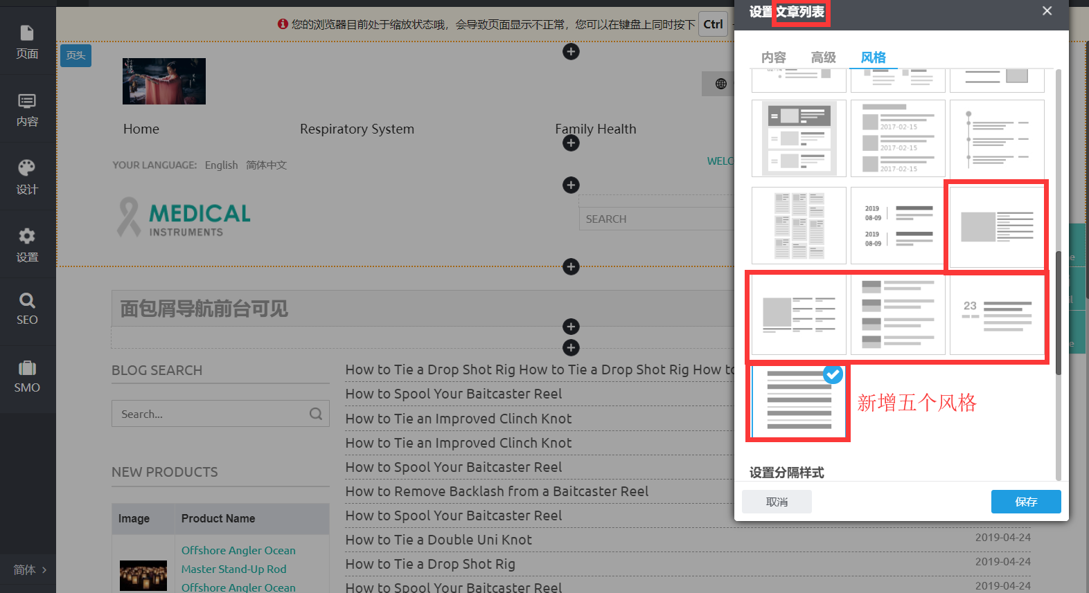 3、“文章列表”组件新增5个风格;