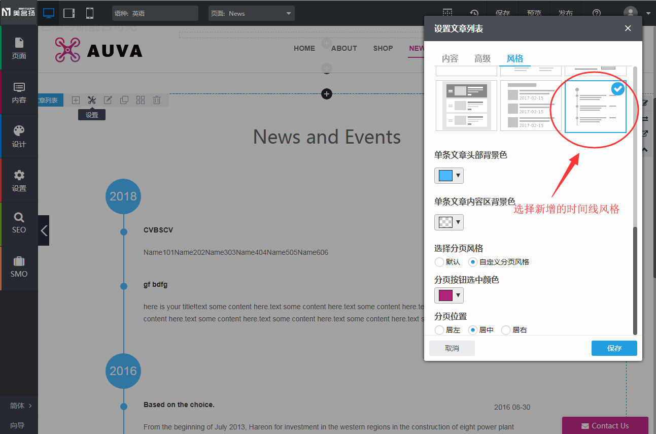 【应用场景】用户需要展示公司、产品的逐年发展变化时,可以使用新增的展示每年年份的时间线风格文章列表。