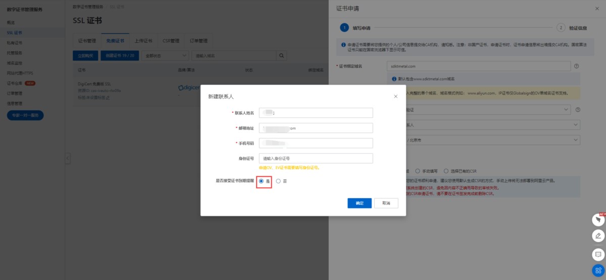 10,把联系人信息写上,勾选接收证书到期提醒。