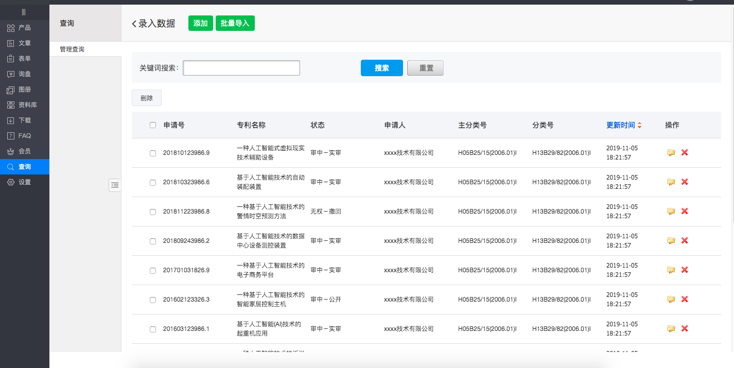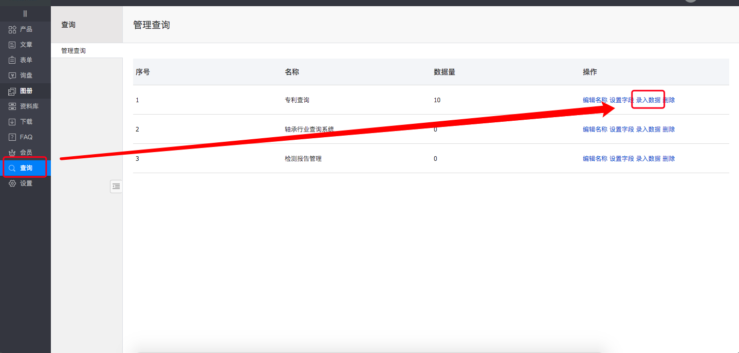 [操作指导]进入内容管理后台,点击“查询”-“录入数据” 进入管理查询界面,如下图所示: